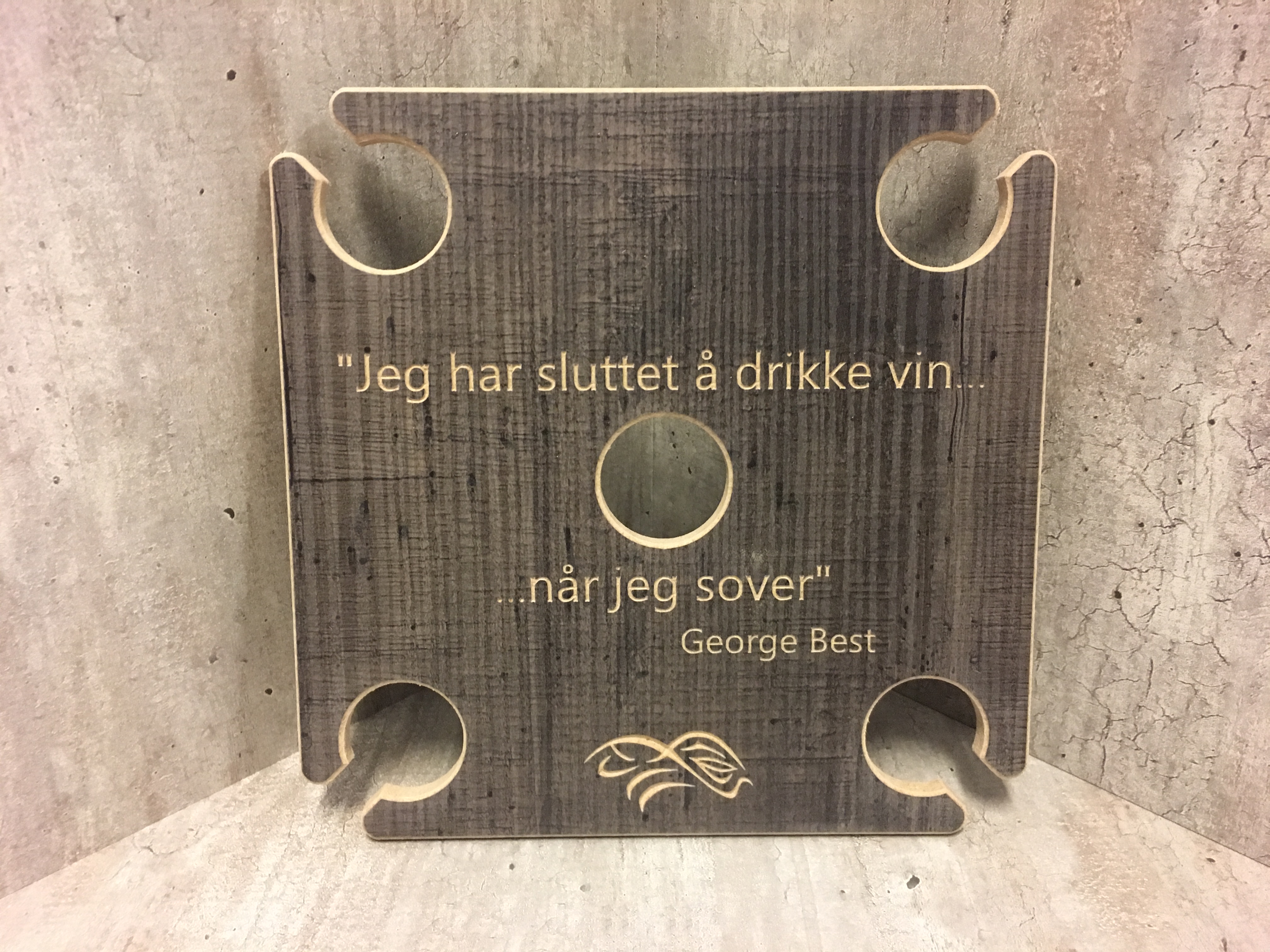 Ønsker du å bestille med selvvalgt tekst,  kan vi fikse dette for et tillegg kr 300,-. Vi  har skjenkebrett med mange forskjellige motiver og tekster. Vi har med sitater og stjernetegn, vi har for bobil, camping, båt og hytte.